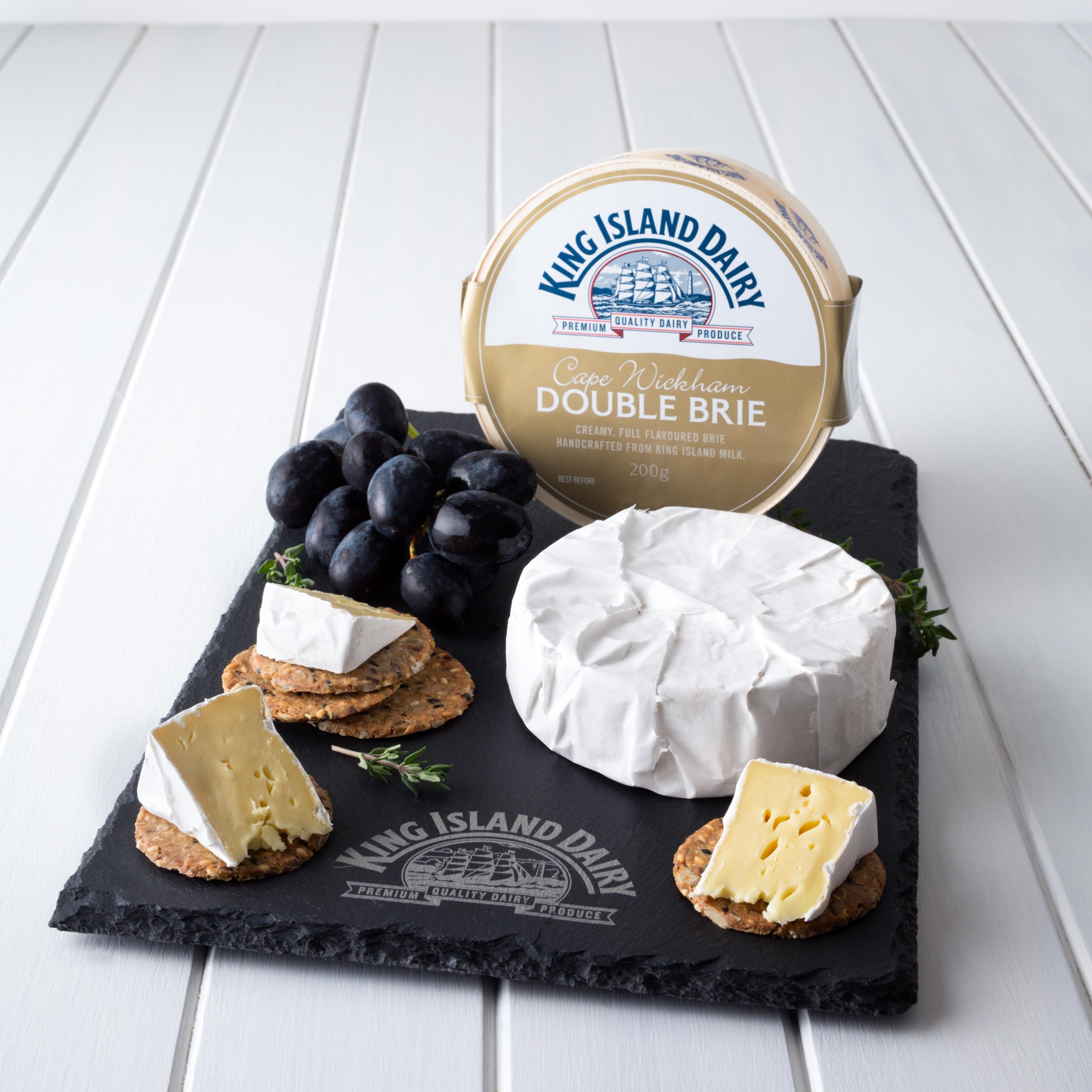 Encased in its signature balsa box, Cape Wickham Double Brie is made with milk of a high butterfat content, creating a creamy, nutty and full flavoured cheese.